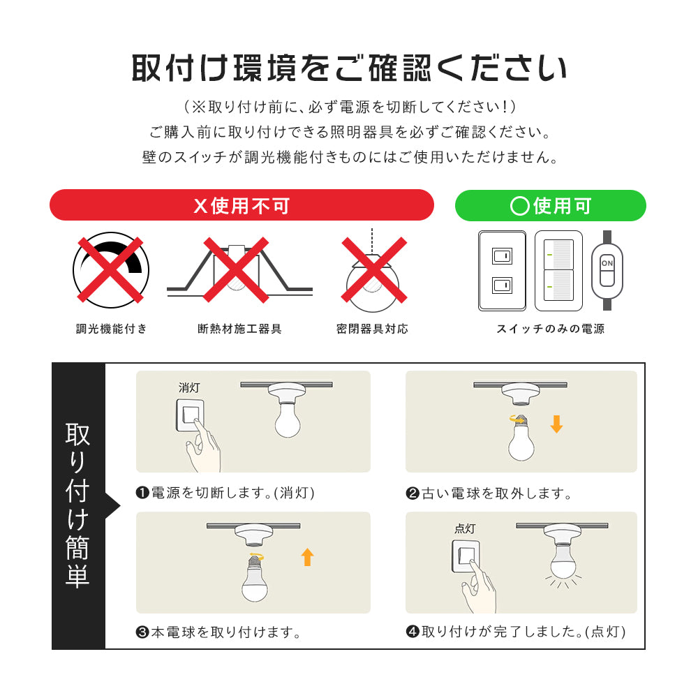 ※調光機能付きの照明器具及び壁スイッチには対応しておりません。 |