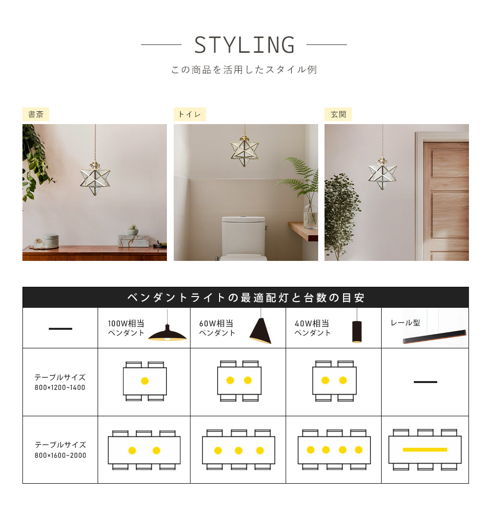 ペンダントライト:φ200×H1345(最大)※長さ調節可能 シーリングライト:φ200×H288※長さ調節不可 |