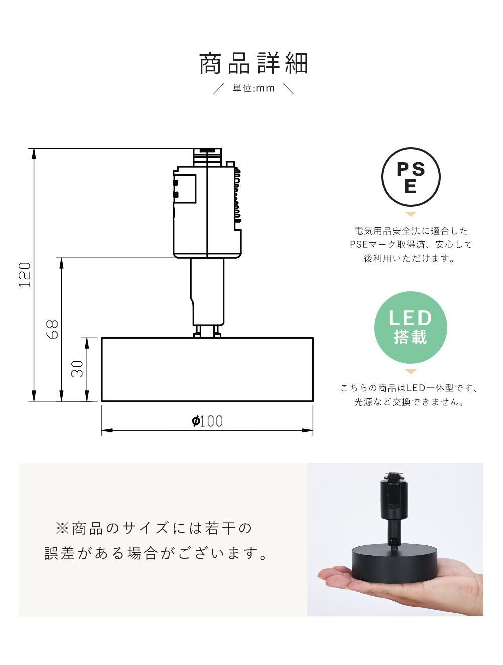 LED内蔵式、電源交換不可 |
