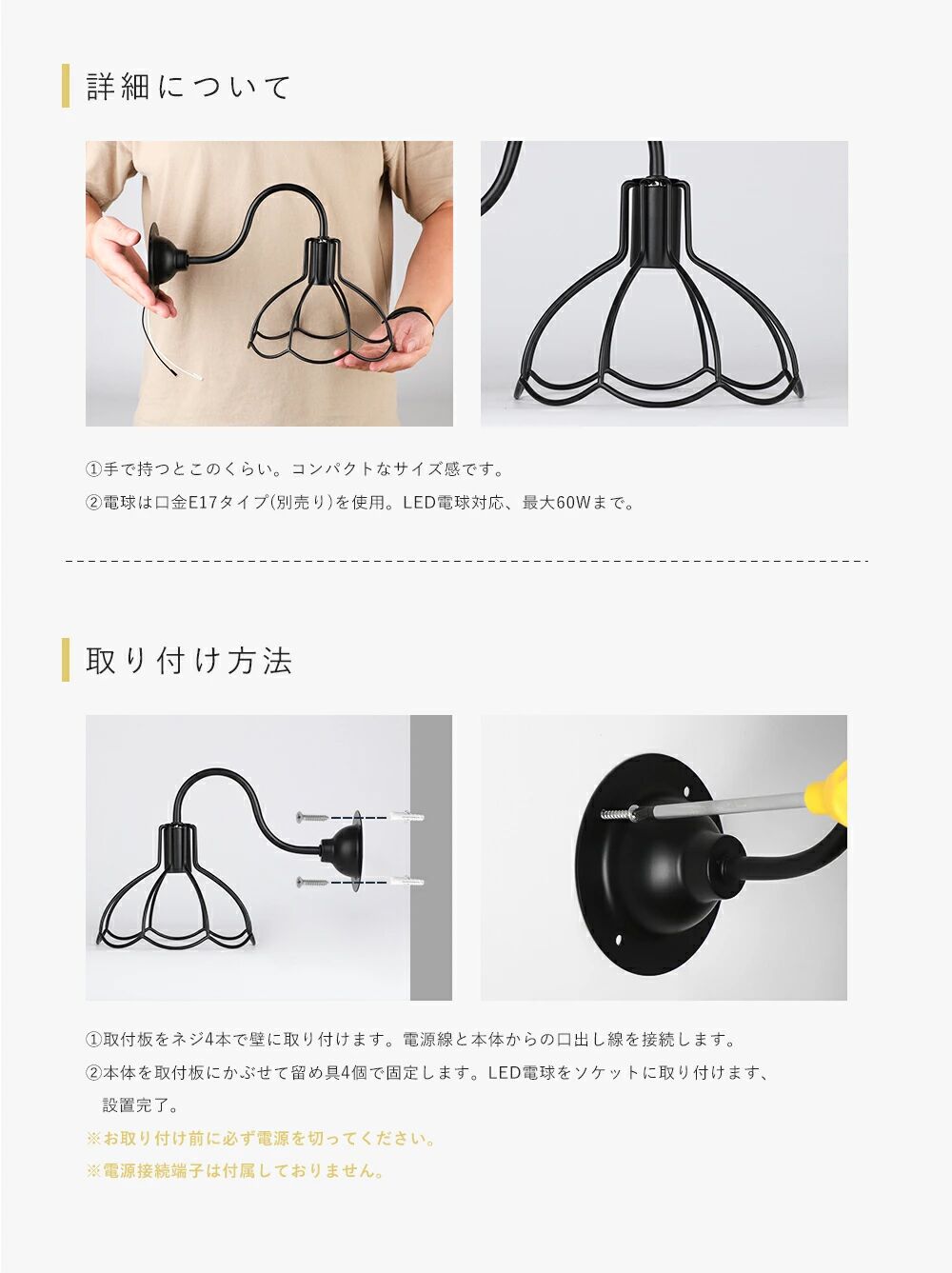 ※電気ショットや発火を防ぐため、取付け前に手順の説明を読んでください。 ※取り付けには専門業者による電気工事が必要です。 ※こちらの照明は、屋外の取付けには対応しておりません。 ※こちらの商品はホタルスイッチ・調光器スイッチには対応しておりません。(調光器スイッチをご使用の際は、調光器対応の電球をご使用ください。) ※傾斜のある天井・壁、凹凸のある天井・壁ではご使用いただけません。 ※お手入れやライト交換は電源を切り、ライトやその周辺が冷めてから行ってください。 ※温度が高くなるものを、器具の真下やその近くに置かないでください。 ※点灯中や消灯直後のランプやその周辺に触らないでください。 ※輸入商品につき、輸送などのキズがある場合があります。